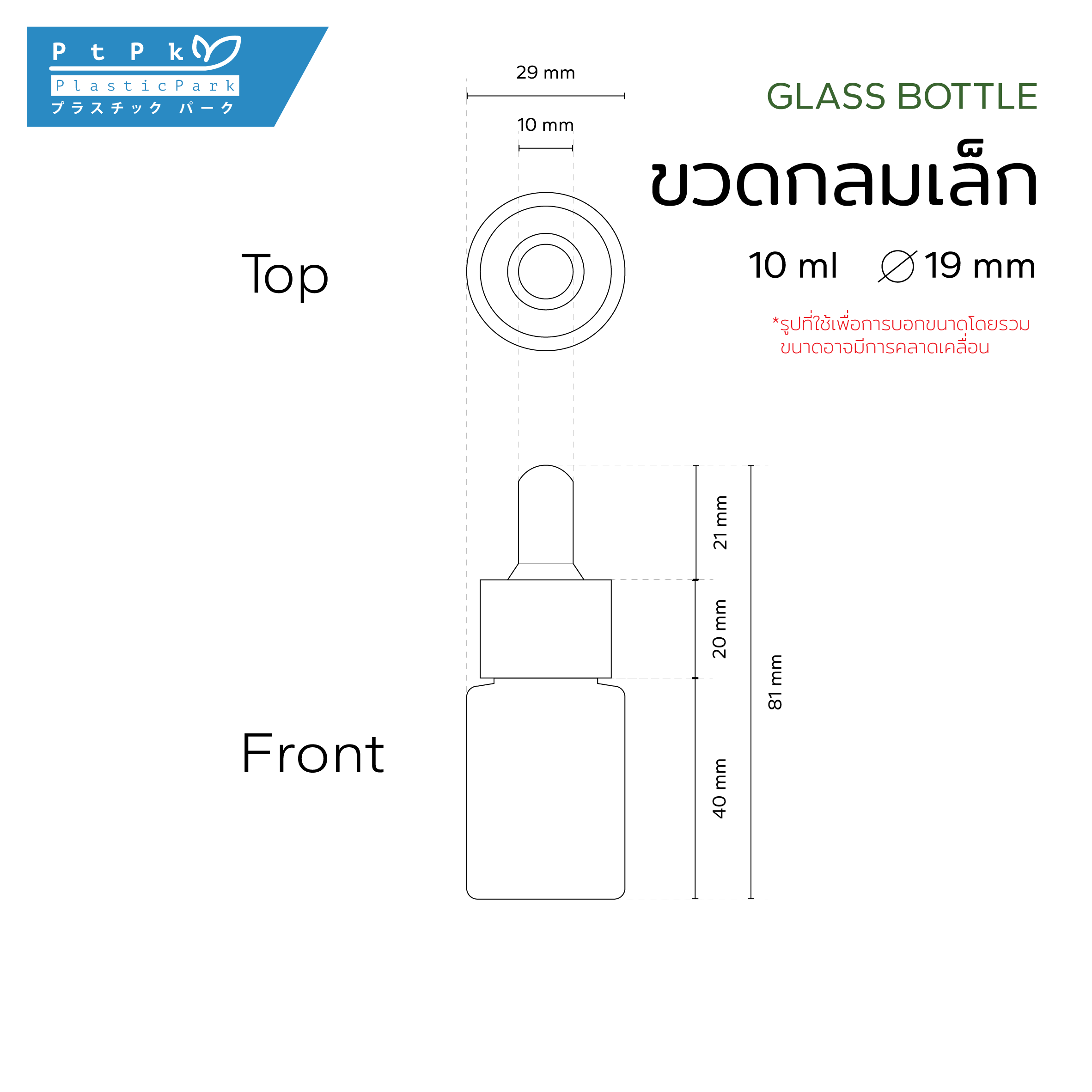 ปริมาตรสุทธิ(filling volume) : 10 ml