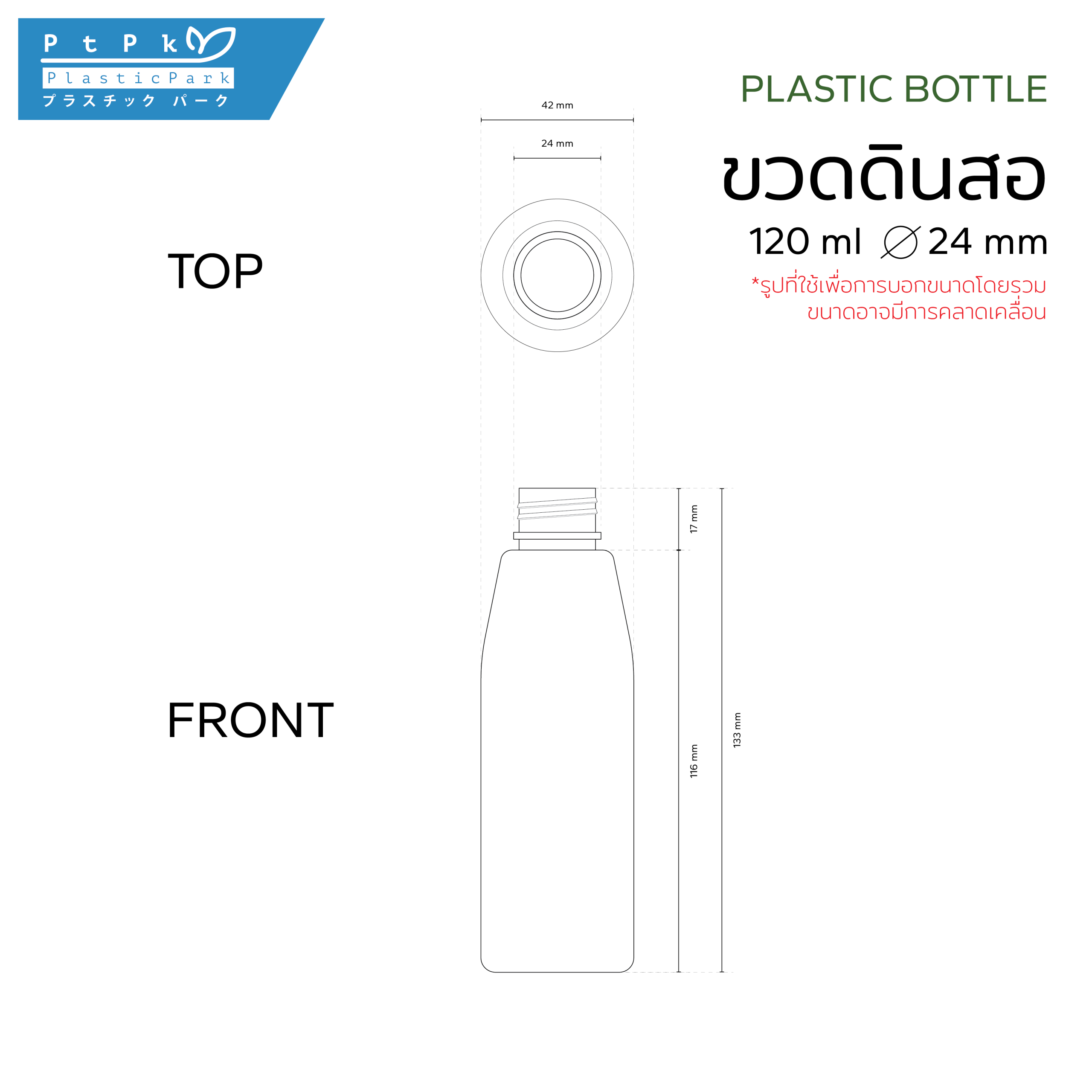ปริมาตรสุทธิ(filling volume) : 120 ml