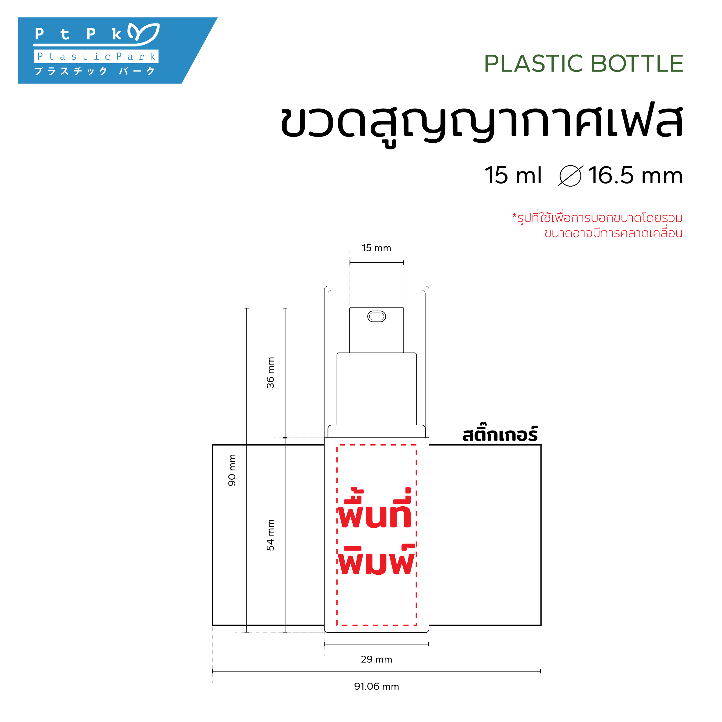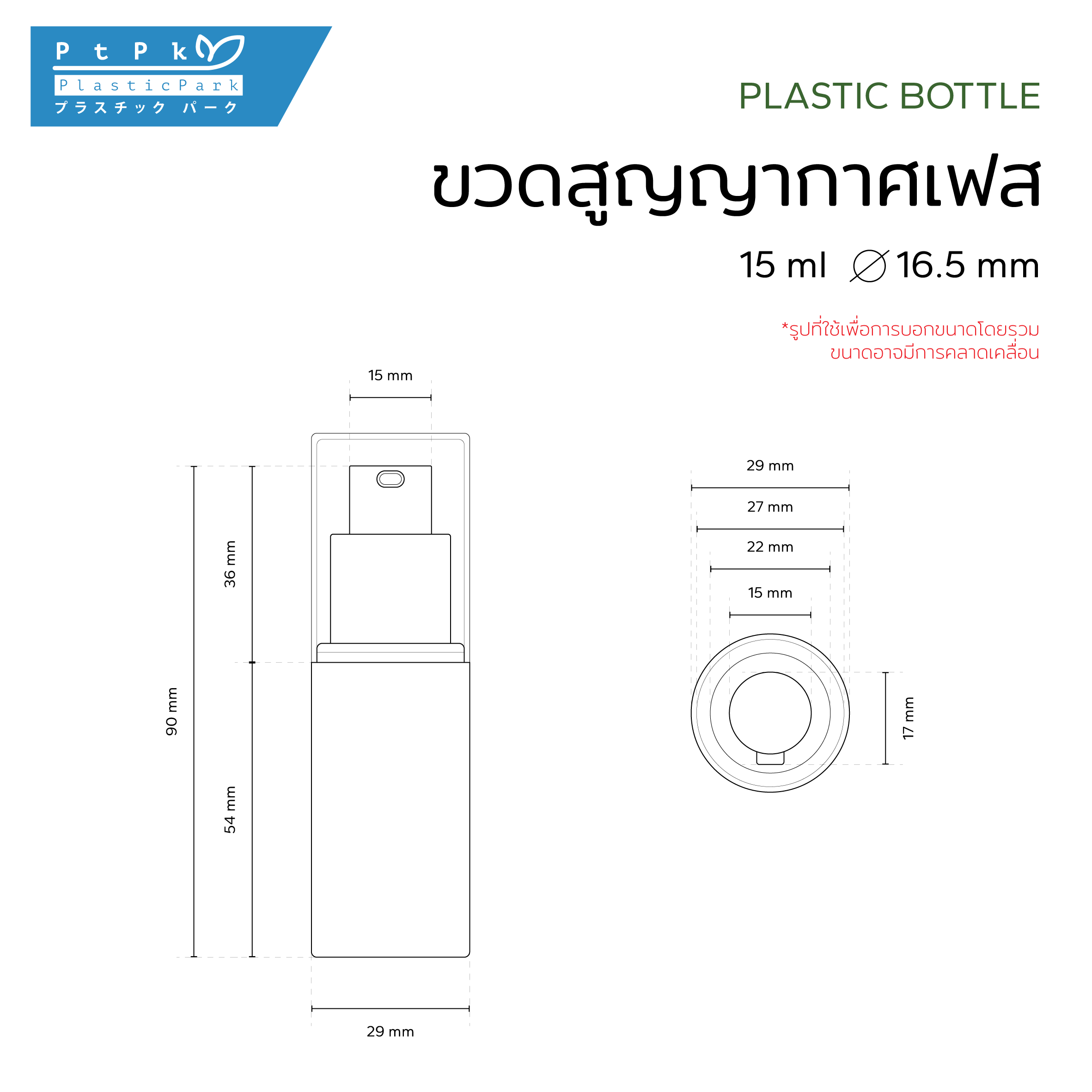 ปริมาตรสุทธิ(filling volume) : 15 ml