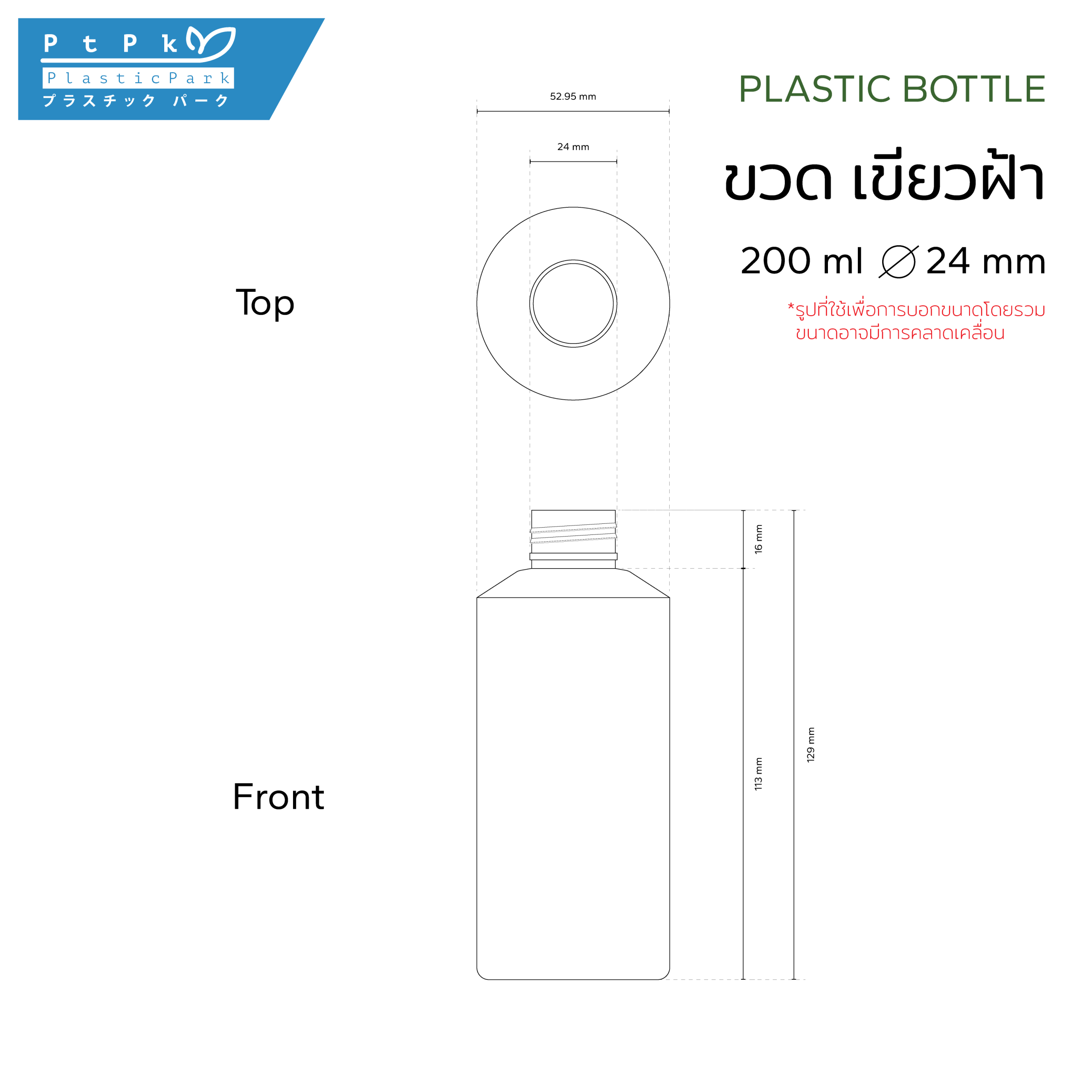 ปริมาตรสุทธิ(filling volume) : 200 ml